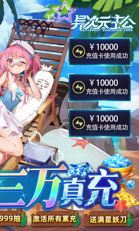 3.每天登录在线就可领取海量充值卡!充值卡使用能激活所有累充活动,还可免费激活首充和月卡,资源拿不停!