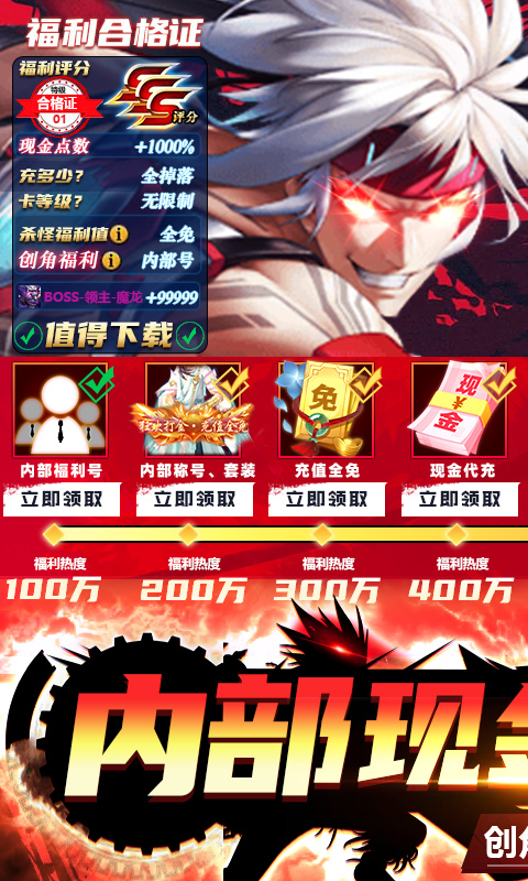 8、内部福利号,创角即可激活内福利号,稀有道具掉落UP↑、经验加成、充值全免