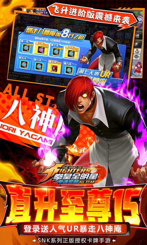 【KO开局】:充值比例1:800!上线送超人气SSR八神庵,十万充值!创角邮件直送500万至尊经验,秒升至尊15