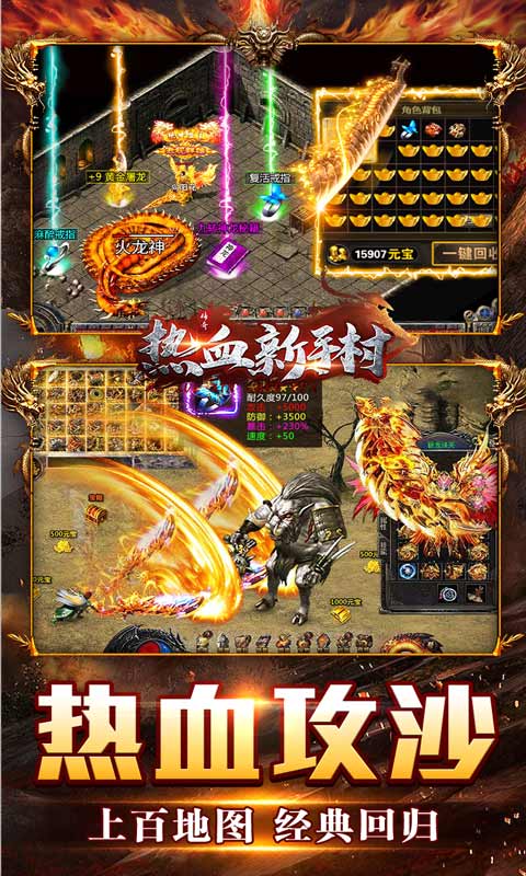 《热血新手村》是一款精心制作的单职业超变传奇手游,上线就送200真充卡,首充,赞助直接白给,最大特色就是加入了在线送充系统,玩家每日在线即可领取真充卡,开启多倍奖励则有更多奖励、每天在线爆充值,打怪爆顶级。超高爆率,刀刀光柱,散人称王,2023最爽超变版本!