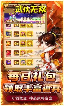 这是一款全新国风武侠手游,游戏中不仅有江湖趣事,还有超爽超自由的战斗模式。这款游戏背景起始于混乱四起的世界,这是一个匪盗猖獗的乱世,作为江湖人士的你,定要逐鹿天下,还这一个太平盛世。招兵买马,开疆拓土,经典历史人物大乱斗,给你一个不一样的武侠世界!!