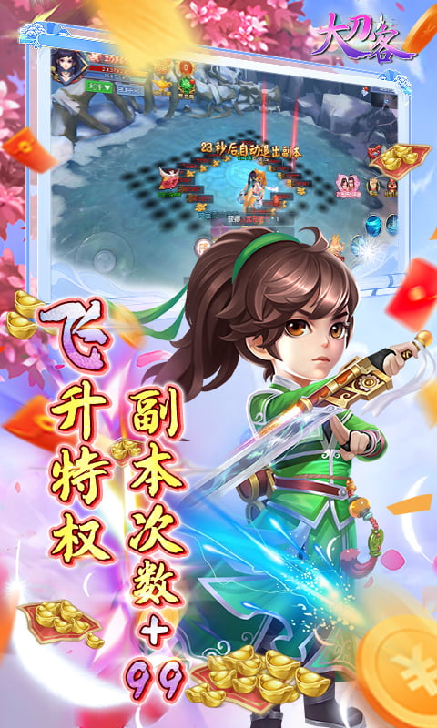 1.登录福利:上线激活VIP9特权,免费领取vip礼包,赠送元宝58888,金币8888万!