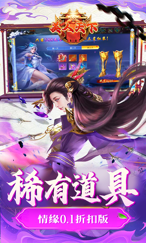 《美人天下(情缘0.1折扣版)》身临其境的故事情节,唯美的玄幻意境,演绎三世情缘的恋爱,更多的神秘地域,更多的玩法元素,置身于梦幻之中,邀你共闯三界。也为玩家们准备了浪漫的情缘功能,只要是你想脱单,那么这就是你的最佳选择,前尘后世君莫问,几度轮回为红颜,漫漫仙途路,去找寻属于你爱恋的仙侣吧!