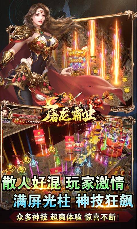 等玩法,剧情丰富有搞头,技能特效有讲究,战斗冒险纵横驰骋,热血的战斗为你带来超爽的体验!炫丽的技能秀翻全场,精准的打击斗智斗勇。在玩法方面,以打金、升级、爆装、抢沙等传奇核心玩法为主,另外加入了跨服激情PK战斗。快快加入吧与兄弟们征战吧!真正的热血传奇邀你来战!