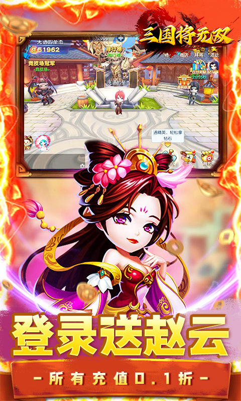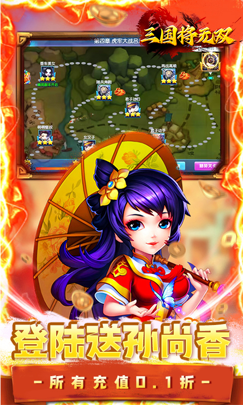 这是一款时空穿越模拟养成类卡牌手游作品,让玩家穿越三国做主公,结交天下豪杰。个性鲜明的时装,国风古韵的场景,绚丽多彩的技能,让你爱不释手;回合策略的对战,穿越到到战场点兵,排兵布阵的三国乱世;属性各异的武将自由搭配,打造属于自己的“三国战队”!这是一个烽烟四起,群雄逐鹿的年代,这是一个上兵伐谋决胜千里的世界,这更是一个英雄辈出,名将如云的时代。国色天香貂蝉、战神无敌吕布、七进七出赵云、万夫不当之勇的关羽将英雄美人尽收帐下,一起谱写不朽传奇。萌将无双 名将养成,颜值和实力并存超萌Q版粘土人,怪蜀黍、御姐、软妹子轮番登场,陪你征战天下!