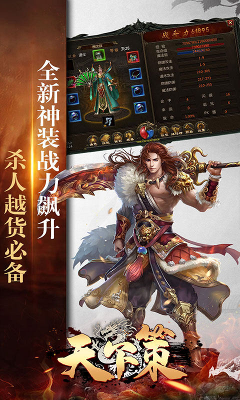 天下策(金猪全场0.1折)是一款原汁原味的传奇类手游,复古的人物模型、武器装备、BOSS带你回味1.80版本的盛世经典;全新的单职业战士集法师、道士技能于一身,给你无比爽快战斗体验;丰富的玩法,打不完的BOSS,极高的爆率让你能够在传奇的海洋里遨游。新增宠物系统能够让你打怪无忧,抢宝无虑。在游戏中不仅可以体验动作操作所带来乐趣,更精心设计了剧情引发玩家对人生的深入思考,使玩家体会团队协作的乐趣以及惩恶扬善的精神, 努力培养玩家良好的价值观和世界观。快带上小伙伴们一起来攻沙夺城吧!