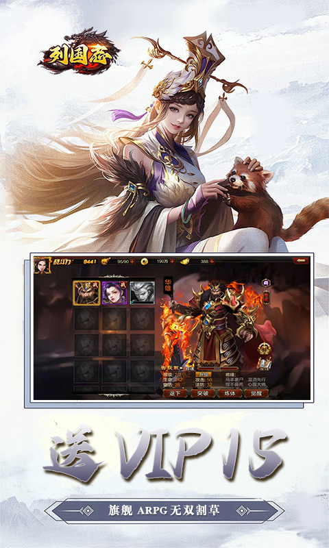 登录即送VIP15、铜钱*188万、橙将*1、紫将*1、武将突破丹*88、红装精炼石*18、武将觉醒石*28、宝物精华*8