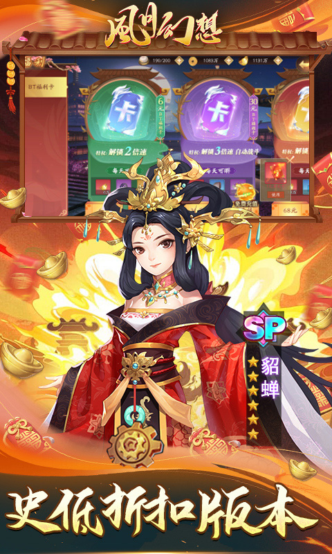 《风月幻想(史低折扣全免版)》 是一款三国题材放置卡牌游戏。游戏采用了十分唯美的国风画面,人物造型采用二次元风格制作,取材于东方历史神话,在这里你会见识到各大神仙大战,搅动仙界的超级大乱斗。游戏中的冒险剧情十分精彩,拥有丰富的PVP玩法,快来带上你的小伙伴来体验吧!