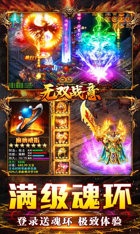 《无双战意(免氪魂环送首充)》是一款全新传奇手游,免费打金、免费送满级魂环、赞助,送首充大礼包版本全面来袭。