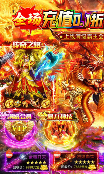 ★上线直接送:满级VIP、超级称号*1、热血时装*1、钻石*888万、元宝*5000万,