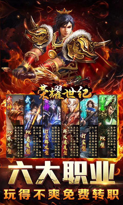 2:六大职业免费选 PK打宝职业任意选,玩得不爽免费转职