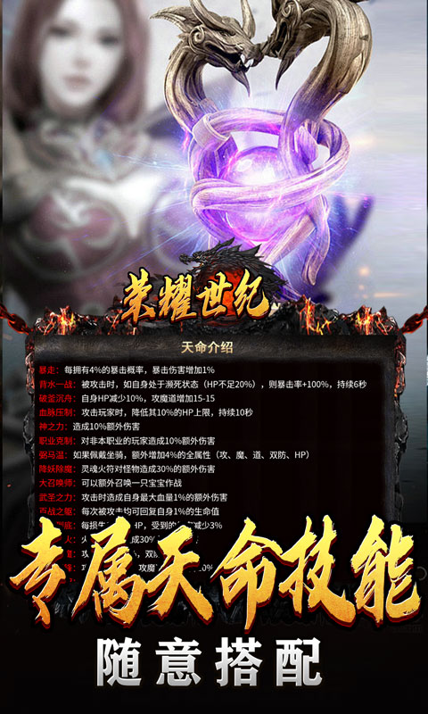 荣耀世纪:复古天命三职业欢迎来到《荣耀世纪:复古天命三职业》,这里是一个还原经典、追求纯粹游戏体验的世界,每一个细节都旨在让您感受到最原始的快乐:新手友好.开放的地图与丰富剧情。公平竞技环境 复古生态,注重玩家体验 回归2003年的纯真年代 立即加入《荣耀世纪:复古天命三职业》,开启您的传奇冒险旅程吧