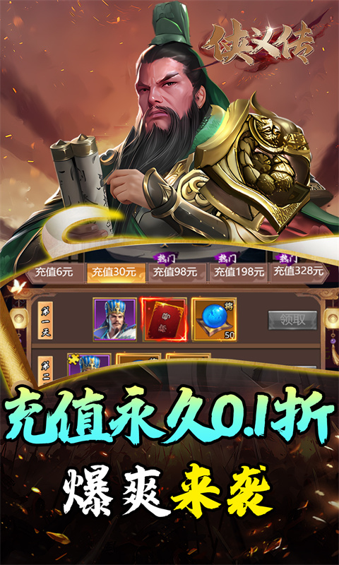 3:武圣关羽霸气降临!直接把这位红色品质的战神武将送给你。有了关羽,你在战场上就是无敌魔神,在千军万马中取敌将首级,简单得如同伸手到口袋取东西,每场战斗都能霸气称霸!