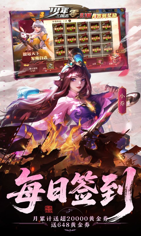 【每日签到】每日送 648 黄金券,月累计再送 5000 黄金券、自选金色宝物+自选军师