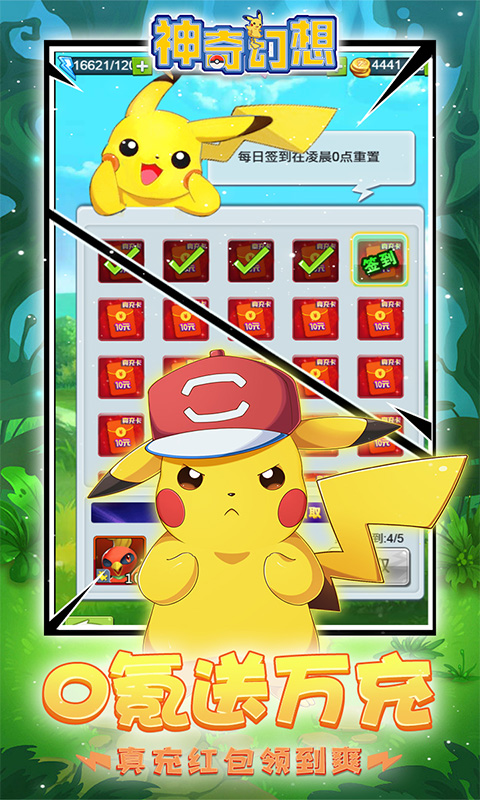 丰富的游戏特色玩法,给你带来无限的乐趣,0氪送万充,真充红包领到爽。签到送真充,在线领海量钻石,主线送初代御三家,还有强力超梦登录送,赶紧来加入,集齐那迷人的宠物图鉴吧!